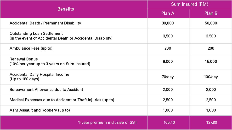 For as little as RM0.30 a day, you can get peace of mind, knowing that if anything were to happen to you or your family, the cost of paying for an accident will be of no issue