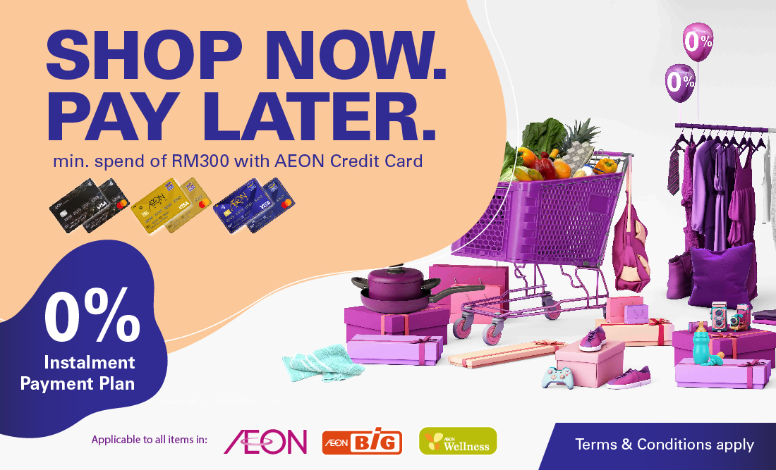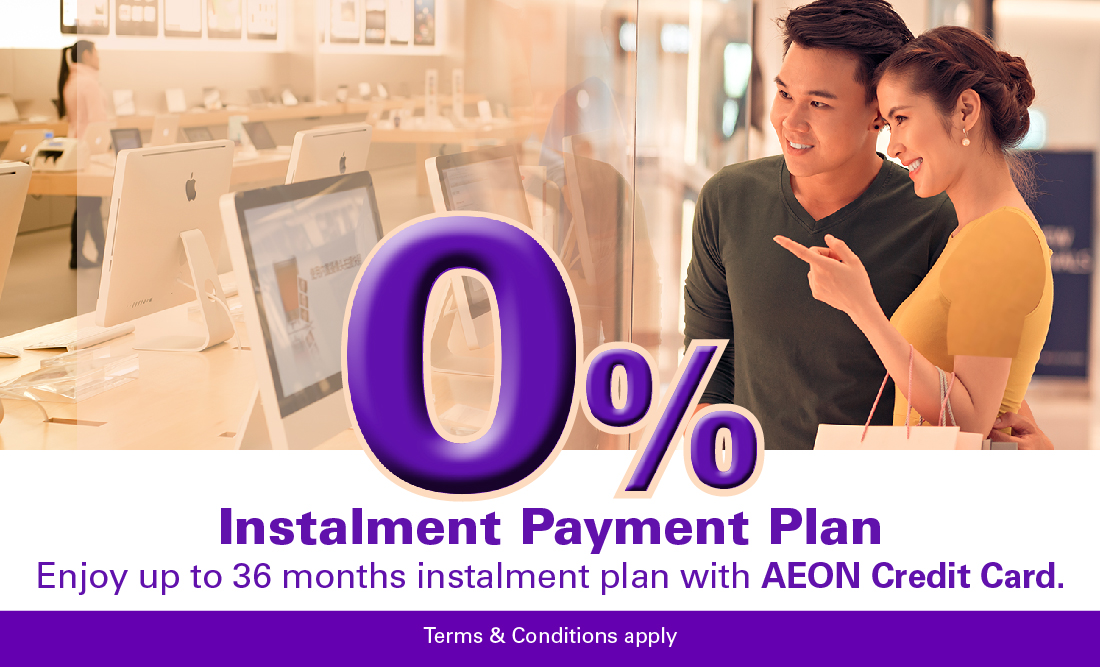 You can now spend at selected merchants and enjoy 0% Instalment Payment Plan with AEON Credit Cards