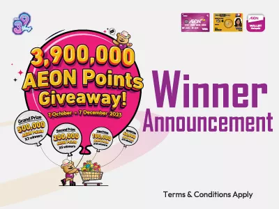 Winner Announcement for 3,900,000 AEON Points Giveaway Contest